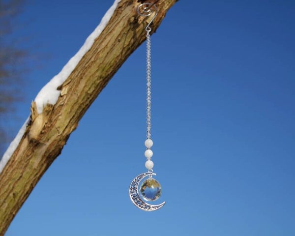The total length of the Crystal Moonstone Suncatcher is approximately 26cm including the hook.