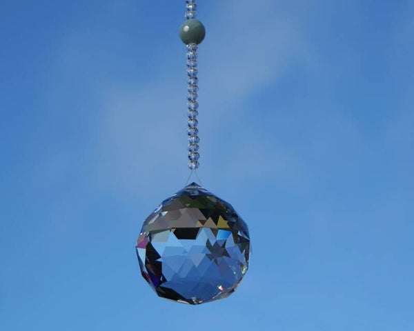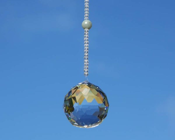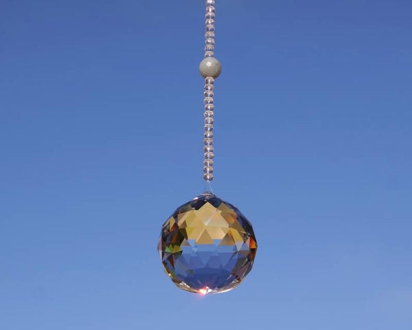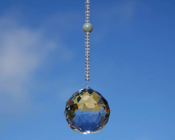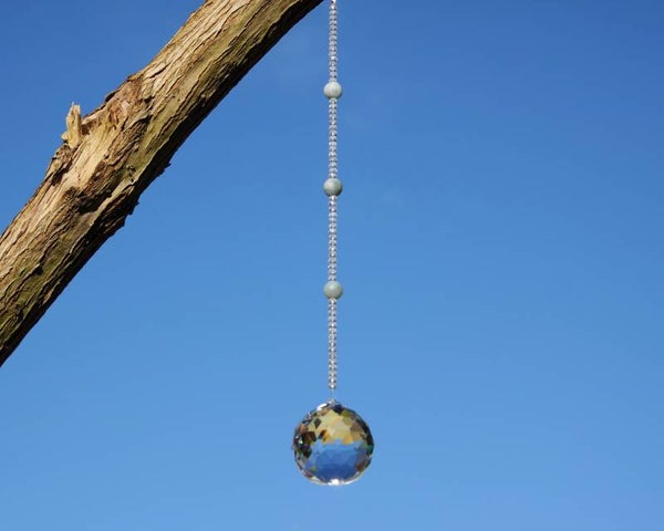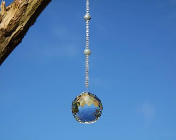 The total length of the Crystal Suncatcher with Aquamarine is approximately 34cm including the hook.