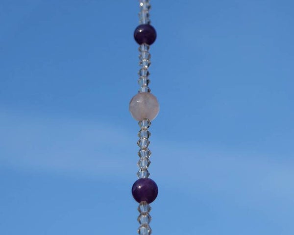 The total length of the Crystal Rose Quartz Amethyst Suncatcher is approximately 28cm including the hook.