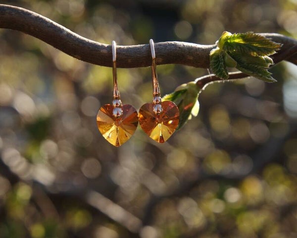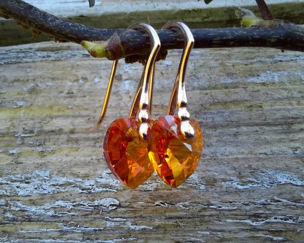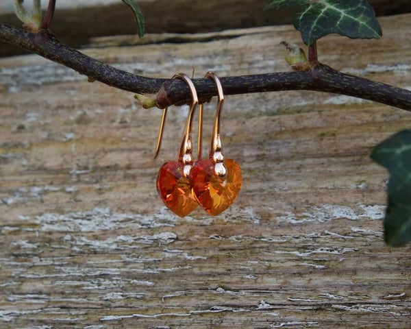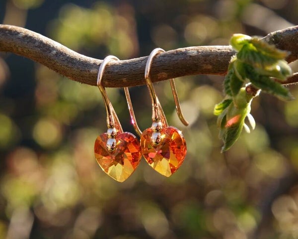 The Astral Pink Swarovski element crystals are a an orange shade accented with pink and hints of yellow, depending on the light shining on them. The faceted hearts are pointed, which creates incredible reflective intensity en makes the crystals sparkle and shine even more.