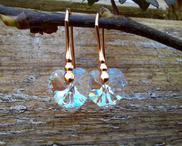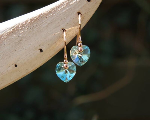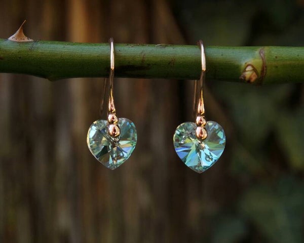 The Crystal Shimmer Swarovski element crystals are clear with silvery/blue flashes, but the exact colour depends on the light shining on them. The faceted hearts are shimmer coated, which creates which creates incredible reflective intensity and makes the crystals sparkle and shine even more.
