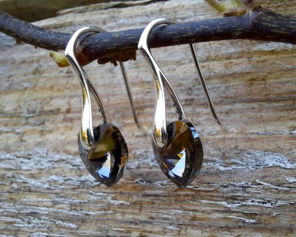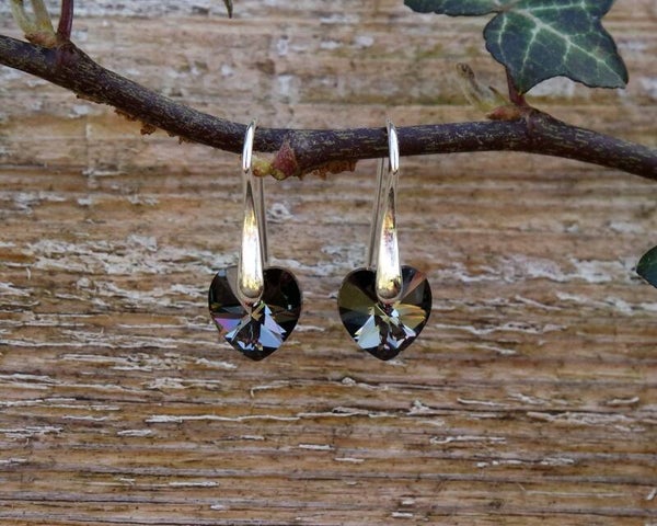The Crystal Night Swarovski element crystals are a silvery grey colour, but the exact tones depend on the light shining on them. The faceted hearts are foil backed and pointed, which creates incredible reflective intensity and makes the crystals sparkle and shine even more.