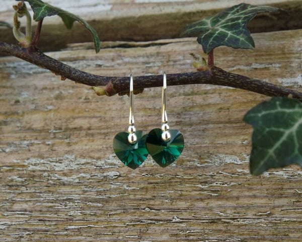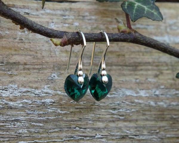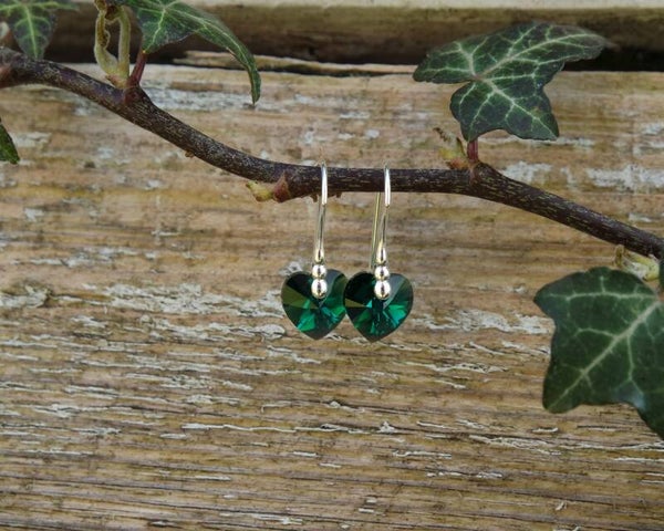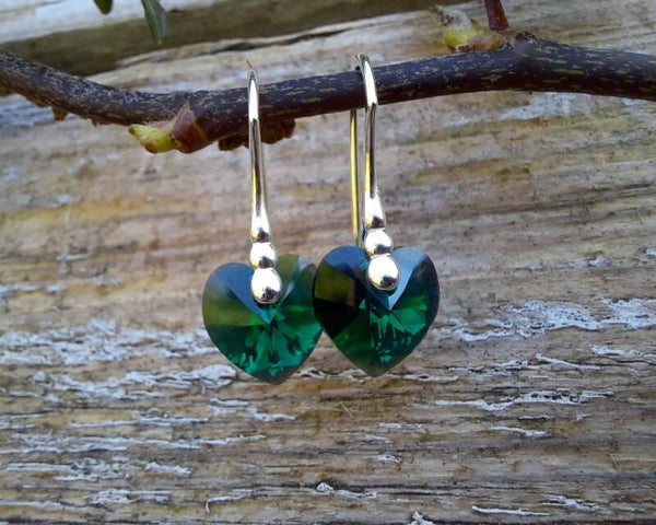 The Emerald AB Swarovski element crystals are a dark green colour. The faceted hearts are AB coated, which creates an iridescent effect and makes the crystals sparkle and shine even more.